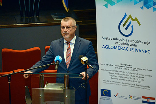 Tijek realizacije projekta pojasnio je direktor Ivkom-voda Ranko Zbodulja, koji je na početku svog izlaganja istaknuo kako društvo IVKOM-VODE d.o.o. kao javni isporučitelj za vodoopskrbu i odvodnju koji djeluje na području gradova Ivanca i Lepoglave, te općina Bednja, Klenovnik, Maruševec i Donja Voća, ima kapacitet izvorišta od 3,94 milijuna kubičnih metara vode godišnje, vodovodnu mrežu od oko 450 kilometara, a kanalizacijsku mrežu od 30 kilometara. Što se tiče grada Ivanca pokrivenost javnom vodoopskrbom je 100%, a odvodnjom tek 46%, i to je dovoljni pokazatelj nužnosti gradnje sustava odvodnje i pročišćavanja otpadnih voda, odnosno aglomeracije Ivanec.